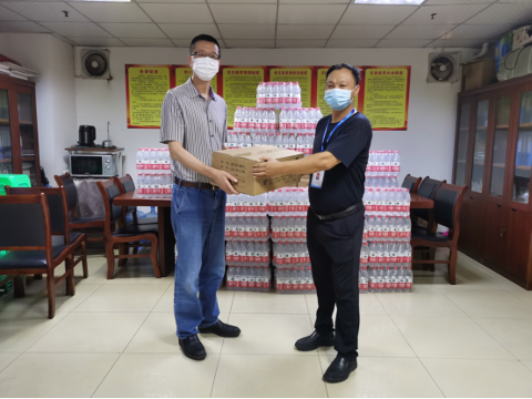 ? ? 夏季高溫炎熱,市場一線員工依舊堅守崗位,確保公司疫情防控和經營發展平穩有序。8月4日上午,在連晴40度高溫天氣下,觀農貿公司開展了“我為群眾辦實事”送清涼慰問活動。公司黨委書記、董事長喻東、黨委副書記、總經理張科平、黨委副書記、紀委書記、工會主席劉宏一行深入基層一線,向高溫下堅守崗位的市場一線員工致以親切的問候,并督促其戰高溫、防疫情、保安全、促經營,同時為他們送上防暑降溫物品。